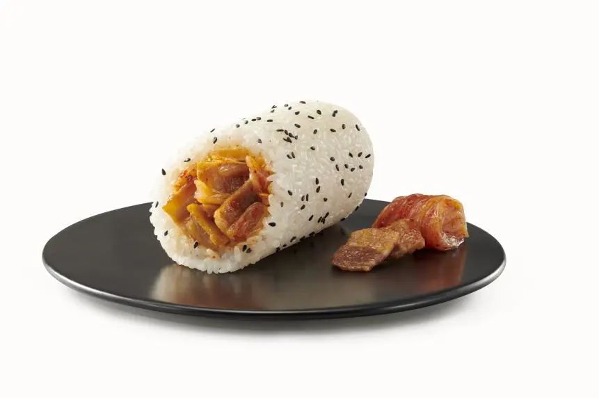 泡菜五花肉饭团,酸酸甜甜辣辣的泡菜包裹着香而不腻的五花肉,让人味蕾大开。